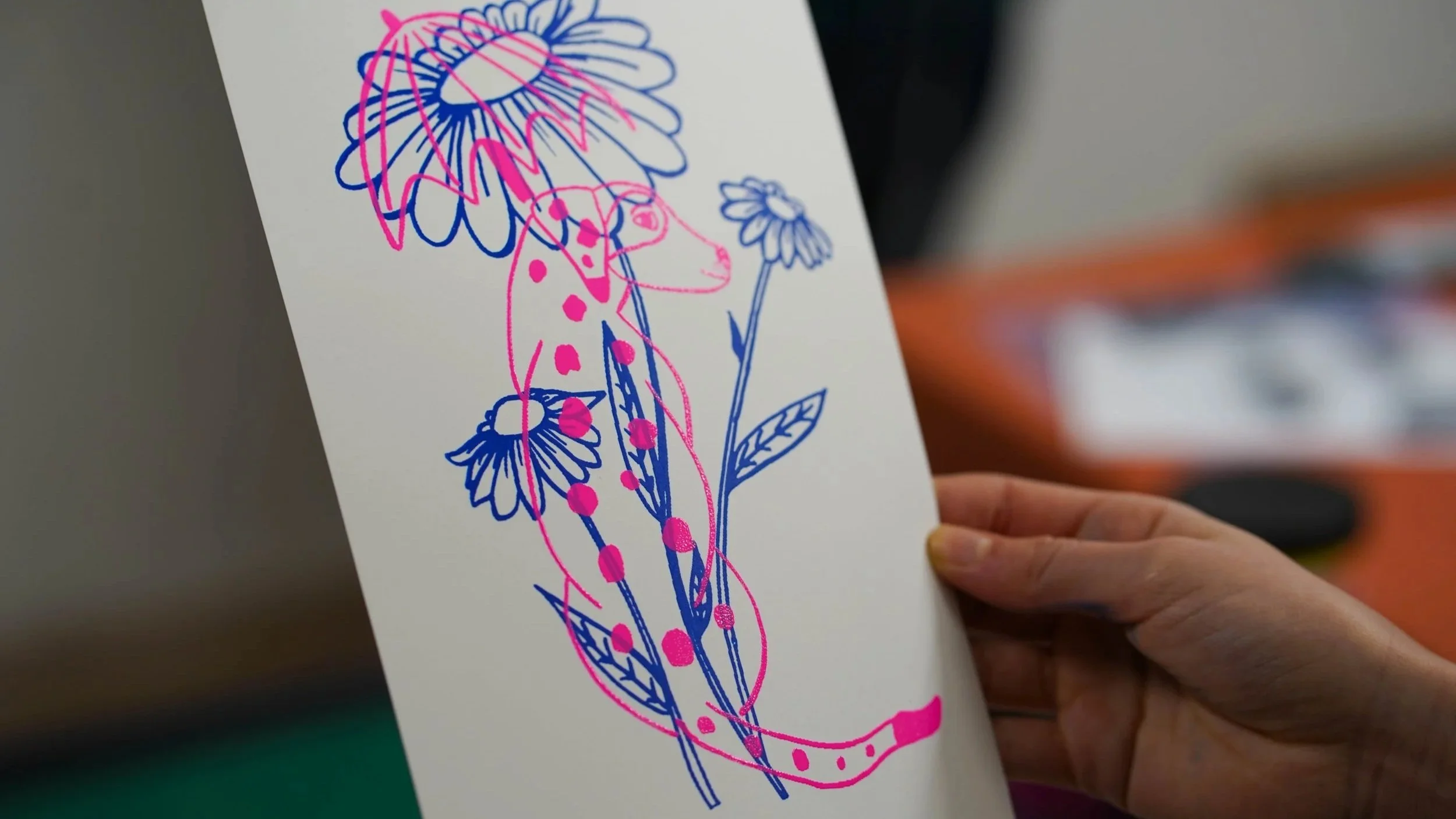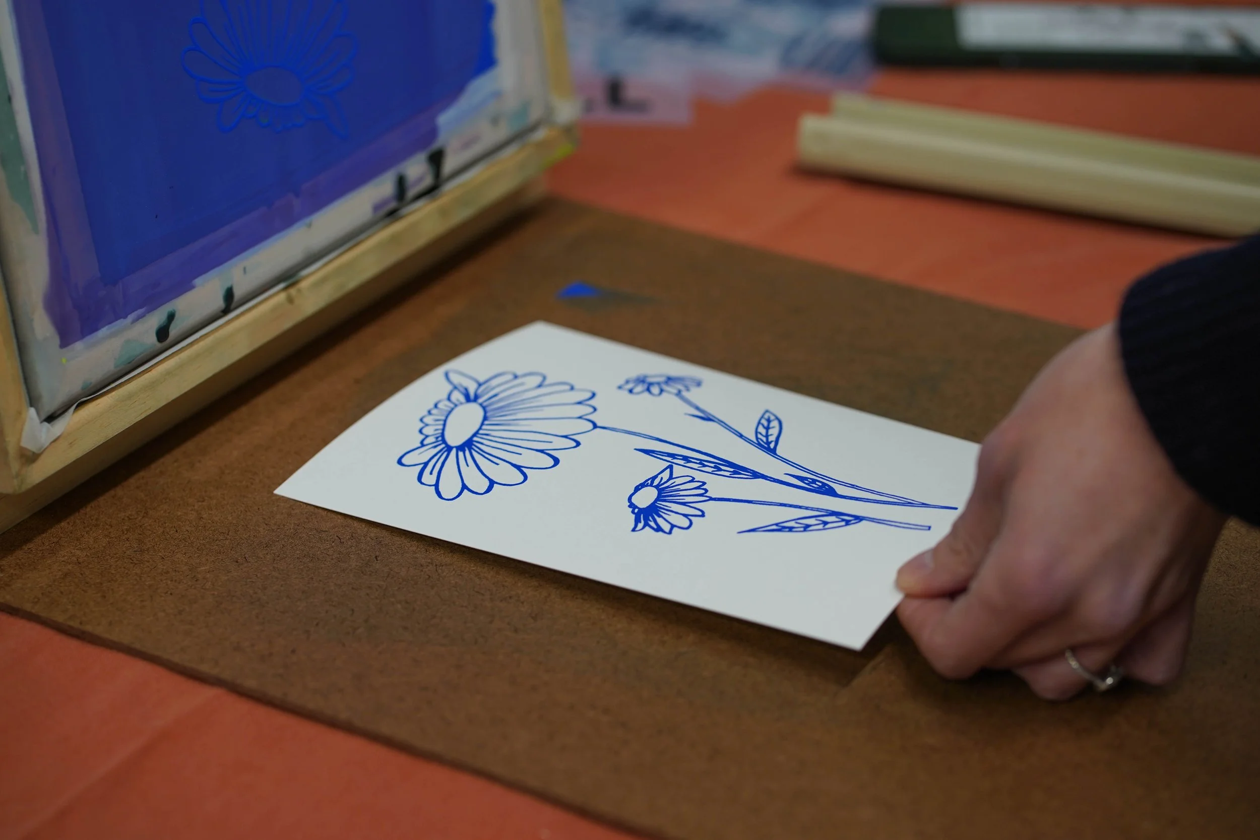 Lors de l'atelier de sérigraphie que j'ai animé chez un particulier, les participantes ont eu la liberté de dessiner ce qu'elles souhaitaient. Elles ont ensuite mélangé leurs illustrations entre elles, et le hasard a créé de belles réussites. Ce moment de partage et de créativité a permis à chacune d’explorer la sérigraphie de manière ludique et spontanée.