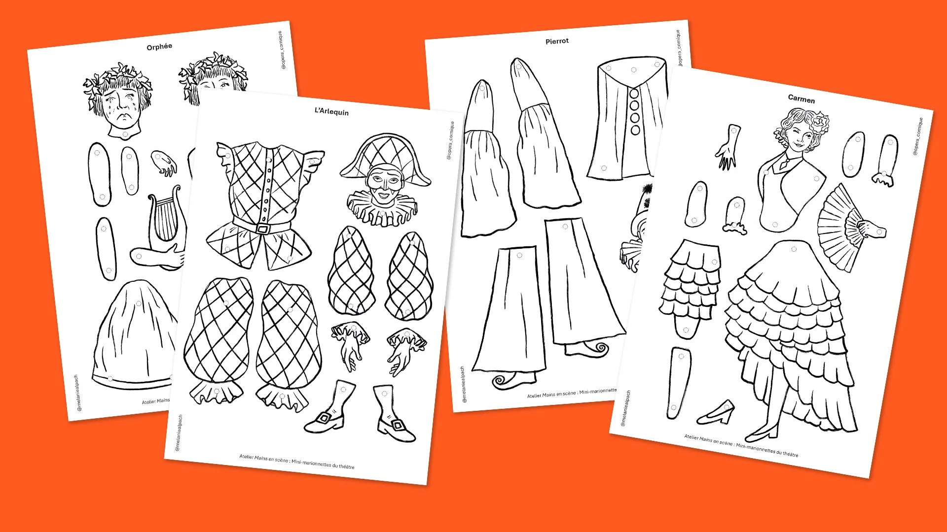 Lors de cet atelier, les participants ont plongé dans l’univers théâtral et musical de l’Opéra Comique pour créer leur propre marionnette articulée en papier. À partir de patrons de personnages et de costumes, chacun a pu découper, assembler et personnaliser sa marionnette, donnant vie à un personnage unique et laissant libre cours à son imagination. Une expérience créative et ludique au cœur des coulisses de l’opéra sur cette scène mythique.