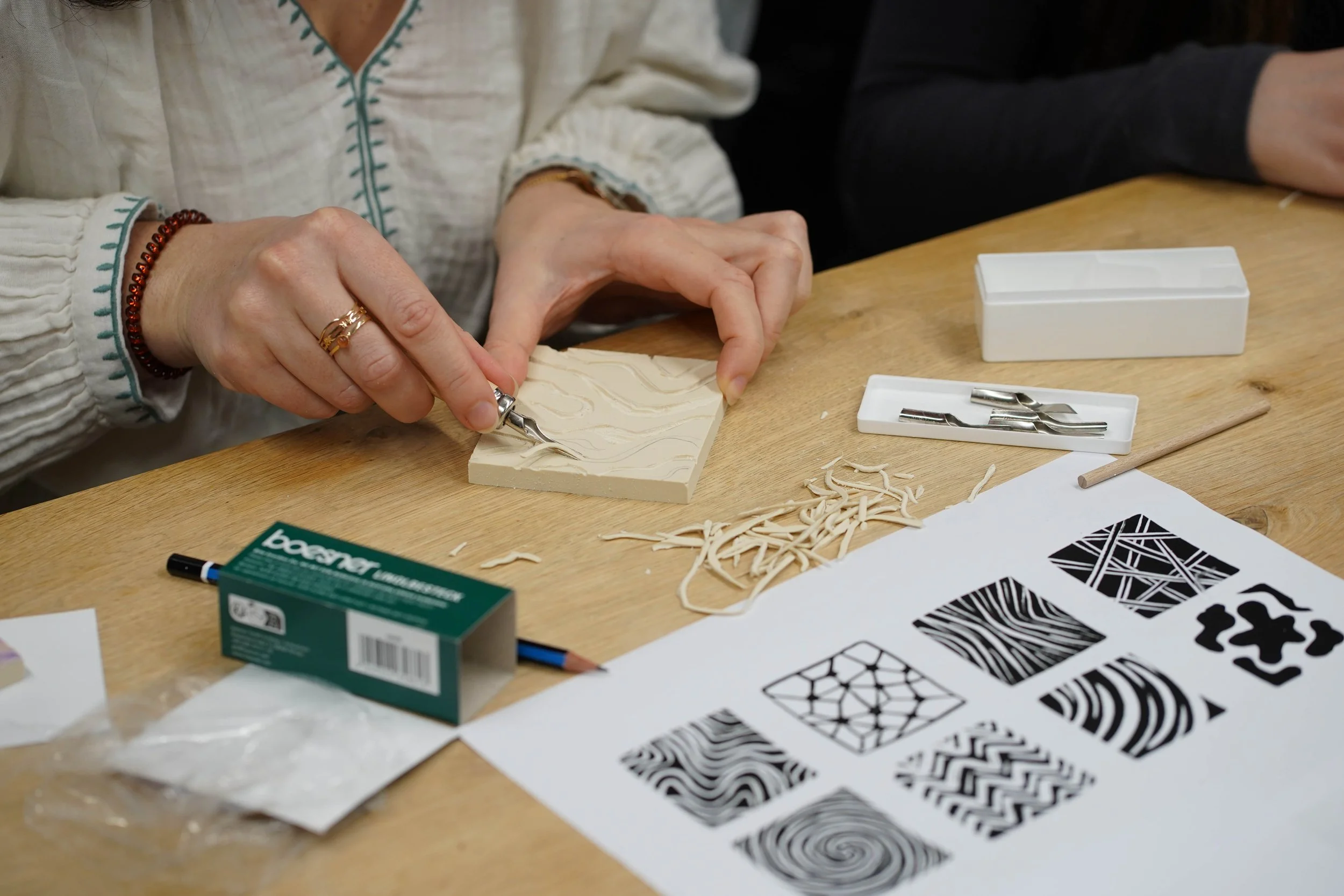 Lors de cet atelier de linogravure sur mesure, les participants ont exploré les synergies entre écologie, nature et ingénierie. Du dessin à la gouge, chacun s’est initié à la gravure pour concevoir ses propres motifs avant de contribuer à une œuvre commune. Par la force du geste artistique, les collaborateurs ont composé une affiche collective monumentale, pensée graphiquement pour traduire les enjeux et les valeurs de l’entreprise. Une expérience créative et fédératrice pour partager une vision commune et créer du lien autrement.